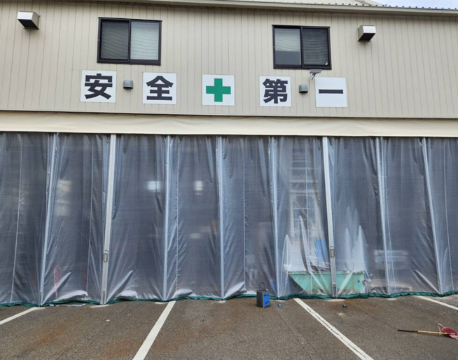 工場用カーテンなどに使用する軟質塩化ビニールシートの加工